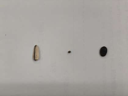 右側の写真は、ある植物の種です。2つは3年生でやっています。