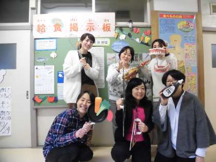 専科の先生たちで写真をとりました。だれが何の教科の先生か、分かるかな?