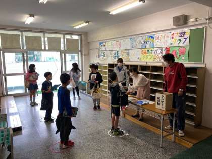 課題の受け渡しだけでなく、先生達からお家での生活の様子も聞かせてもらいました。課題への取り組み方や体調のことを聞くと、「元気だけど、友達に会えないのが寂しい。」という子もいました。先生達も、みなさんと会えない日がとても寂しいです。1日でも早く元の生活が送れるように、一人一人が手洗い、不要不急の外出の自粛など、できることを続けていきましょう。