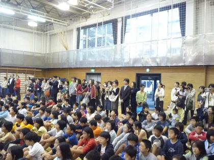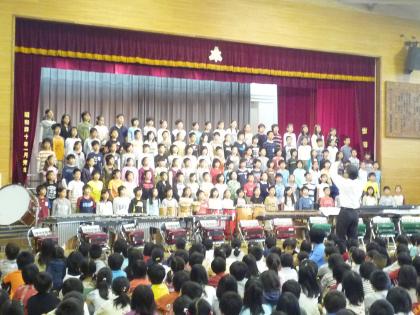 聞いている子どもたちの中には、運動会を思い出して踊りだす子もいるほどノリノリ状態の会場(体育館)には、全員の歌声が響き渡りました。