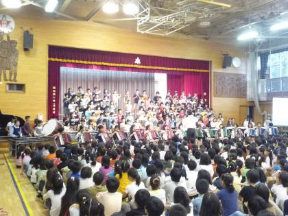 曲目は合唱曲『カリブ夢のたび』と『ひょっこりひょうたん島』の演奏と全校の歌です。