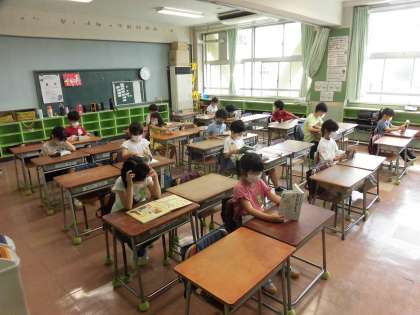 校舎内には元気な挨拶がとびかい、黒板に書いてある指示をしっかり読んで行動する頼もしい姿が見られました。