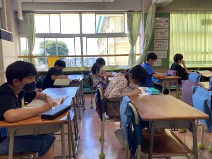 授業では、休校期間中にお家で進めていた学習の復習をしたり、テストをしたりしています。新しいクラスでの学習にまだ緊張もしている様子もありますが、落ち着いて学習に取り組めています。たくさん発言しようとする姿も多くあり、がんばりが伝わってきます。
