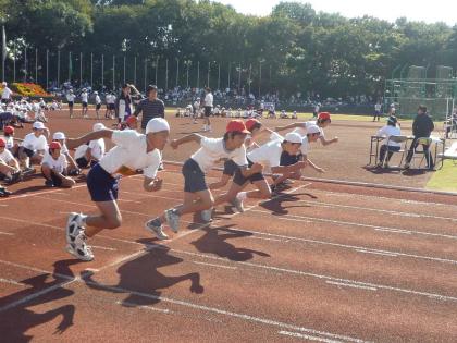 先日延期になった6年生の連合運動会が開催されました。抜けるような秋空の下で用賀小学校の子どもたちが全力を尽くしました。