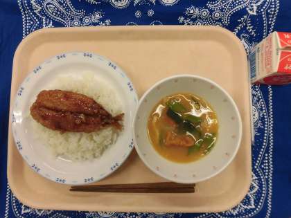 今日は、今が旬の「いわし」を使って「いわしのピリ辛丼」を作りました。そこで今日は、「いわし」のクイズを出したいと思います。いわしは、漢字で書くと、魚へんにある漢字を使います。さて、その漢字とは、次のうちどちらでしょうか?