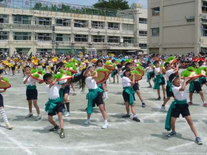6/4 運動会 その6 公開日 2011/06/04 更新日 2011/06/04 今日のできごと 花笠踊り(4年) 四方山流に挑戦しました。 笠をかぶったり、かついだり、はらったりと とてもいそがしいですが、素晴らしい笠さばきでした。