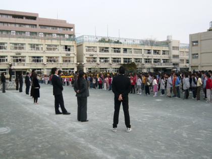 終業式を行いました。2学期のまとめですから、先生方とも全員前で挨拶をしました。校長先生からは、通知表のもらい方のお話と、感謝のことばのお話がありました。児童代表の言葉は、1・3・5年生でした。充実した2学期の学校生活の話や、5年生からは、式典で上級生としてがんばったけど、6年生の立派さにはかなわなかった話などがありました。