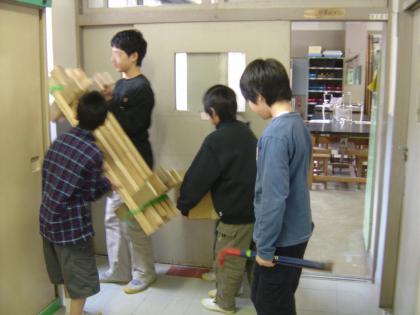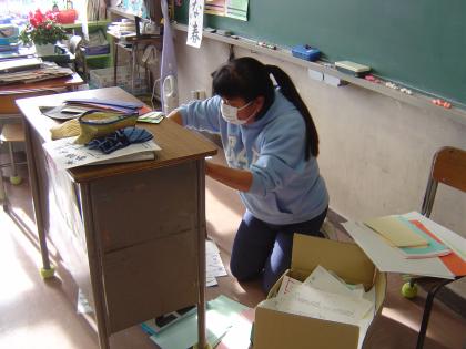 大掃除は、とても大変ですが、みんな真剣です。 先生もマスクをして大奮闘!