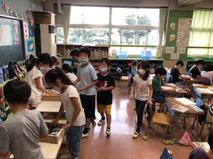 今日の図工では、クレヨンとパステルの使い方(技)を学習しました。3つの技を駆使して、絵を描く。図工の先生から借りたパスにみんな興味津々。たくさん練習しながらも、しっかりと片付けしました。