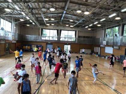 この曲はテンポが速く、短いながらもたくさん回ったり跳んだりするので、なかなか難しい曲です。しかし、経験者を中心に下級生や初心者に教える姿が見られました。列ごとに踊りを確認しながら、ポイントを抑えながら練習しました。