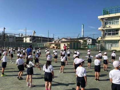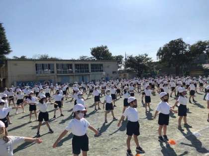 9/30 1・2年 体育朝会 公開日 2020/09/30 更新日 2020/09/30 学年 3年生から6年生のスポーツフェスティバルが終わり、来週はいよいよ1・2年生の番です。今朝は2学年合同での体操の隊形、ラジオ体操を練習しました。クラスで行うよりも大きく開く、体操の隊形。先生の話にしっかりと耳を傾け、取り組むことができました。 保護者の皆様、体育朝会に間に合うよう、早めの送り出し、ありがとうございました。