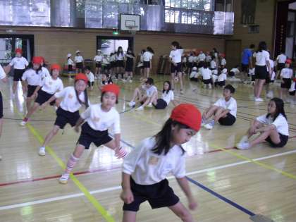 今日はスポーツテストです。立ち幅跳び、反復横とび、上体起こし等、計8種目の記録を測定します。例年、世田谷区が3年生以上を対象に実施していましたが、今年度は東京都も1年生から全学年での実施です。(4年生は明日です)