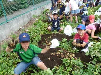 昨日3年生がジャガイモ堀をしました。上用賀アートホール横の柳田さんの畑で収穫を楽しみましたが、大豊作で大喜びでした。