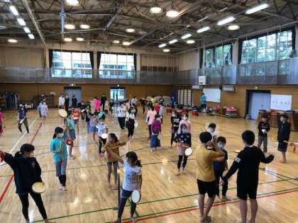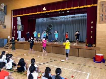 エイサーチームのいいところの一つが、先輩が後輩に教えるところ。高学年は、さすがの演舞力で教えてくれています。