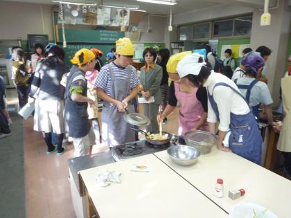 11/5 世小研 研究授業(家庭科) 公開日 2008/11/05 更新日 2008/11/05 校長室より 家庭科の学習は、エコ調理実習ですから、時間が大変です。しかしさすが6年生、中華炒めや、グラタン、マーボー豆腐などの調理を手際よく仕上げていました。 ちょっとつまんでみましたが、なんとおいしいことか・・・。 ごみをできるだけ出さないで調理をすること! 早速、家に帰って実践します?
