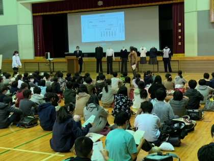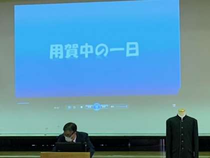 説明会が始まりました。まずはビデオでの学校の1日です。