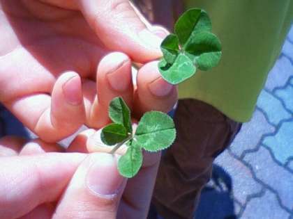 四つ葉のクローバー探しをして見つけました。みんなの幸せな移動教室になりますように。
