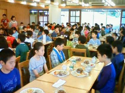 6/23 川場移動教室 2日目ー2 公開日 2011/06/23 更新日 2011/06/23 校長室より 朝食をおいしくいただきました。同行している看護師さんが、「これだけ多くの人数がいて、体調を崩す子どもがいないのは珍しいです」と言っていました。ご家庭での体調管理に感謝いたします。