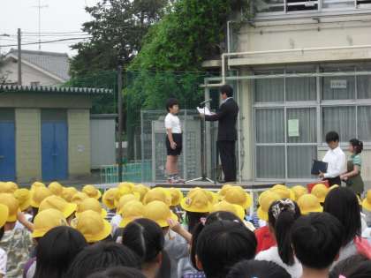 今日の全校朝会は、先週、川場移動教室に行って、162名全員が、雨乞山登山に登頂した5年生の話をしました。162名の中には、登山が苦手な子どももいたはずですが、みんなで声を掛け合い、励まし合って登りきることができました。5年生、一人一人のがんばり、「やればできる」という強い心に拍手を送ります。