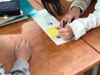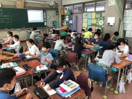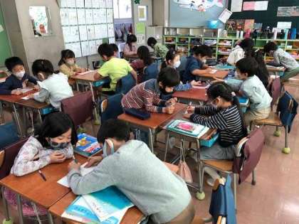 12/8 1年 算数「算数冬支度」 公開日 2020/12/09 更新日 2020/12/09 学年 算数の復習では、一足早く冬休みの準備をすることに!初回の今回は、「おせち料理、どちらが多く食べる?」です。 おせち料理に見立てたマスを2種類用意し、じゃんけんで勝てば色を塗れます。最終的に多い方が勝ちのこのゲーム、中々白熱しました。今回は比べ方で学んだ「どちらが広い?」という題材を用いたゲームをしました。果たして次回はどんな内容でしょうか。 冬支度ができるといいですね☆