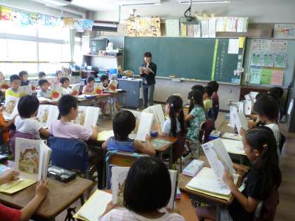 題材は「きつねのおともだち」とういう物語文で、2組の森泉先生と、4組の砂岡先生が授業をしました。2クラス共、子どもたちの活発な発言が素晴らしかったです。