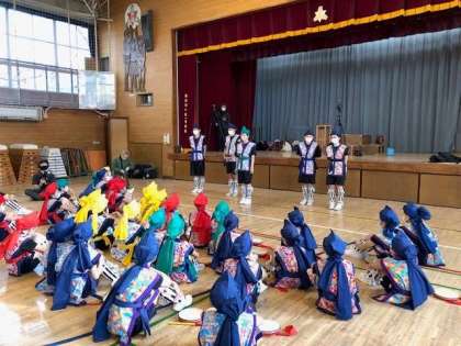 着付けをして、学年写真を撮ったら、一度集合です。校長先生から激励の言葉をいただき、少しリハをしたらいざ本番。