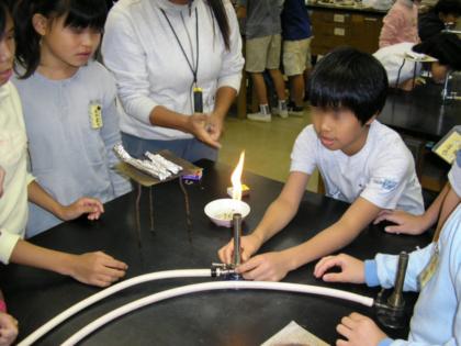 年間指導計画には、ないのですが特設学習として、今日はガスバーナーの使い方と火について学びました。