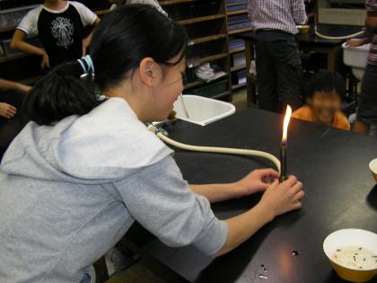 5年1組の理科室での実験です。