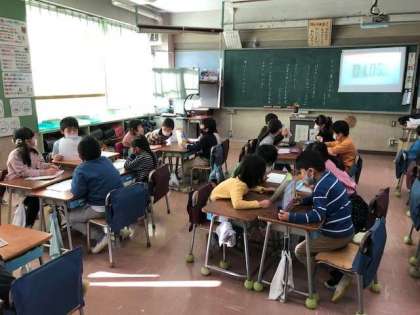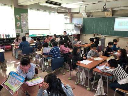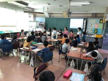 1/22 1年 国語「ビブリオバトルをしよう」 公開日 2021/01/22 更新日 2021/01/22 学年 「昔話を読もう」の単元で行った、おすすめの本を紹介する学習の最後に、ビブリオバトルを行いました。この本のおすすめポイントを班に伝えて、感想や質問を交流し、チャンプ本を決めます。 班での代表が決まったら、クラスでの決勝戦も行いました。初めての活動でしたが、意欲的に行うことができました☆ 一人一人のおすすめ本は、書き初め展終了後に廊下に飾る予定です。