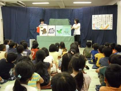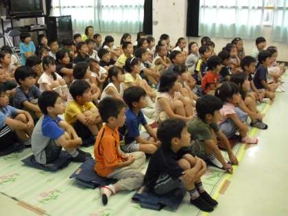 7/12 2年生 お話ランド 公開日 2011/07/12 更新日 2011/07/12 校長室より 今日は2年生のお話会がありました。今日のお話会は、 1、手あそび ワニの家族 1、手作り立体絵本 ふくろうのそめものや 1、ことばあそび イルカ 雨ニモマケズ 1、大型手作り紙芝居 地獄のそうべえ 1、本の紹介 です。 プロ顔負けの演出と巧みな話術に、2年生の子どもたたちは身を乗り出して楽しんでいました。 お話ランドの皆さん、本当にありがとうございました。