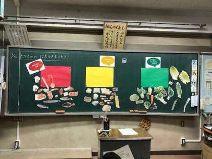 2/15 1年 生活科「野菜となかよし」 公開日 2021/02/15 更新日 2021/02/15 学年 今日の生活科では、食べ物の学習です。主に3つの分け方について知った後、それぞれの食品を予想でグループ分けしました。その後、給食の献立はどのように分かれているのかをペアで考えました。 正解を知ると、「へぇ〜」「そうなんだ!」など、驚きの連続です。 給食はたくさんの食べ物を使いながら、バランス良く組まれていることや、自分の苦手な野菜にどう向き合うか学ぶことができました☆