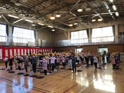 2/19 1年 「6年生を送る会の練習」 公開日 2021/02/19 更新日 2021/02/19 学年 来週に迫った6年生を送る会に向けて、今日は学年で練習を行いました。本番と同じ体育館で行うことで、実際の場所や立ち位置を学び、声がどれだけ通るかも実感することができました。 学年全員で思いを伝えられるのは、実は6年生を送る会が最後の1年生。少ない日数ですが、たくさん練習して、本番を成功させましょうね☆