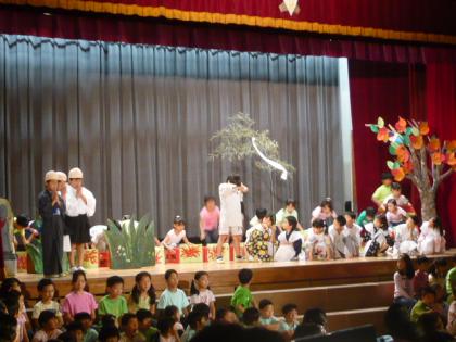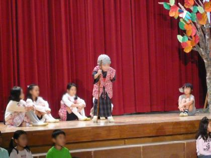 11/15 学芸会 その5 2年生 公開日 2008/11/15 更新日 2008/11/15 今日のできごと 2年生は、「ごんぎつね」です。むずかしいお話でしたが、2年生158人が「ごん」と「兵十」になりきって、歌やセリフで気持ちを伝えました。2人の心の移り変わりを感じ取っていただけたと思います。