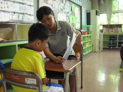 各学級で担任より通知表が手渡しされましたが、それぞれ個性的です。担任の先生も子どもたちもちょっと緊張した面持ちでとっても新鮮です。