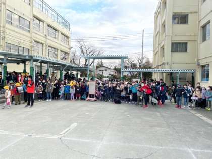 全校児童、教職員に見送られ、とても嬉しい気持ちになりました。今日一日楽しい日になりそうです。
