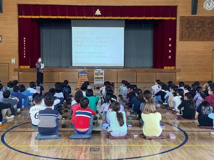 担任の自己紹介の後に、高学年としての心構えや委員会に取り組む姿勢、行事、タブレットの扱い方についての話を聞きました。