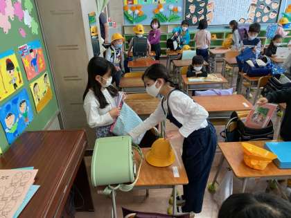 4/8 6年生 1年生お手伝い 公開日 2021/04/08 更新日 2021/04/08 学年 1年生が入学して2日経ちました。6年生は、1年生がすぐに学校生活を送れるように、毎朝お手伝いをしています。登校してきた1年生に、朝の準備ができるように声を掛けていました。最高学年としての自覚が高まってきています。