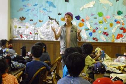 セミやコガネムシなどの生き物についてたくさんのお話を興味深く聞いていました。