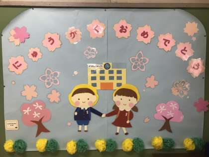 そんな1年生に、ブックアシストクラブの方々がお祝いのメッセージを飾ってくださっています。主事室前にありますので、個人面談など、来校されたときにご覧ください。