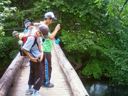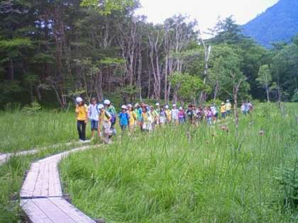 戦場ヶ原はよい天気で、とても気持ちがいいハイキングになりました。グループごとに協力して問題を解いたり、周りの景色を楽しみながら木道を歩いたりして、自然の緑を満喫しています。