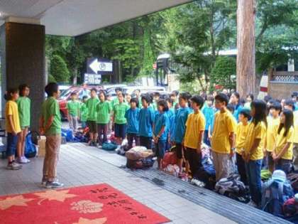 ホテル清晃苑に到着し、開園式を行いました。その後、お風呂に入り汗を流しました。夕食では、おいしいご飯をたくさんいただきました。食欲は元気の源です。