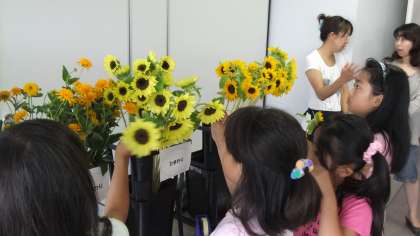珍しい種類のひまわりやなでしこ、カーネーションなどいろいろな花を見せていただき、花の体の仕組みや、花の種類など教えていただきました。