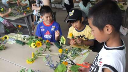 初めてフラワーアレンジメントをした子が多く、花のよさに気づけたとても楽しいスマイルスクールでした。担当をしてくださった「フローレ21」の皆さん、本当にありがとうございました。