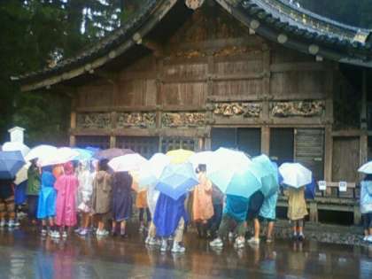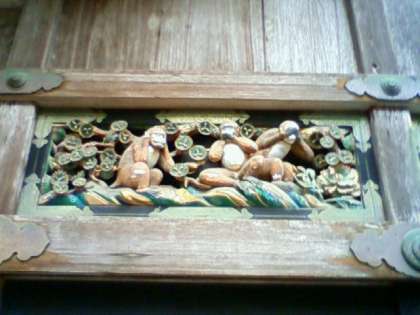 7/28 日光林間学園 3日目 3 公開日 2011/07/28 更新日 2011/07/28 校長室より 「見ざる、言わざる、聞かざる」で有名な三猿、そして白い柱の陽明門です。 雨が少しずつ小降りになってきました。