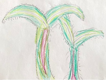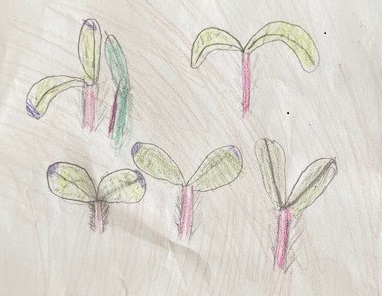 小さい小さい芽が出ました! 子供たちも大喜び。 顔をぐっと近づけて 細かいところまで よ〜く観察しました。