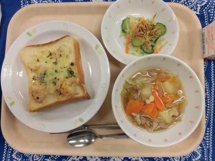 今日は、「ごぼうチップサラダ」に使った、「ごぼう」のクイズを出したいと思います。今日のサラダに使われているごぼうは、パリパリとした食感になっていますが、これはごぼうに何をしたからでしょうか?
