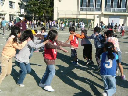 11/25 なかよしタイム 公開日 2008/11/25 更新日 2008/11/25 特色ある活動・取り組み 今年は、雨に降られることが多くてなかなかできなかった「なかよしタイム」です。6学年のたてわり班に分かれて、6年生が皆で遊べるゲームを考えて準備します。とても久しぶりでしたが、とてもじょうずに遊べました。