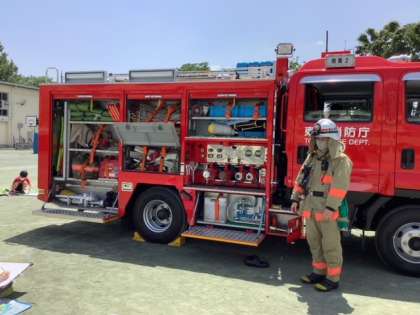 消防車が用賀小の校庭に来てくれました!
