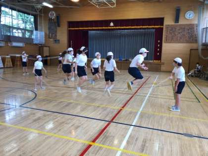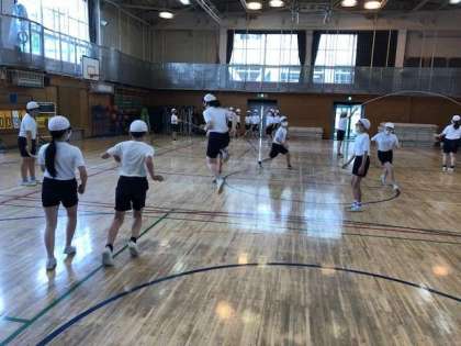 回っている縄を駆け抜ける、跳ぶ、複数人で入る…様々なことを行いました。グループごとに楽しみながら運動をすることができました。