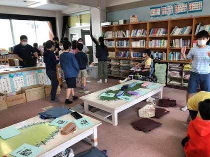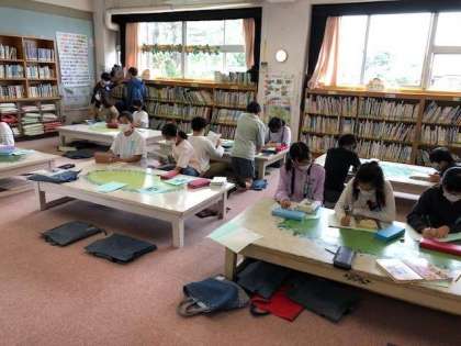 蔵書点検も終わり、今年度初めての図書の時間。司書の先生から図書室のルールを学び、本を借りました。